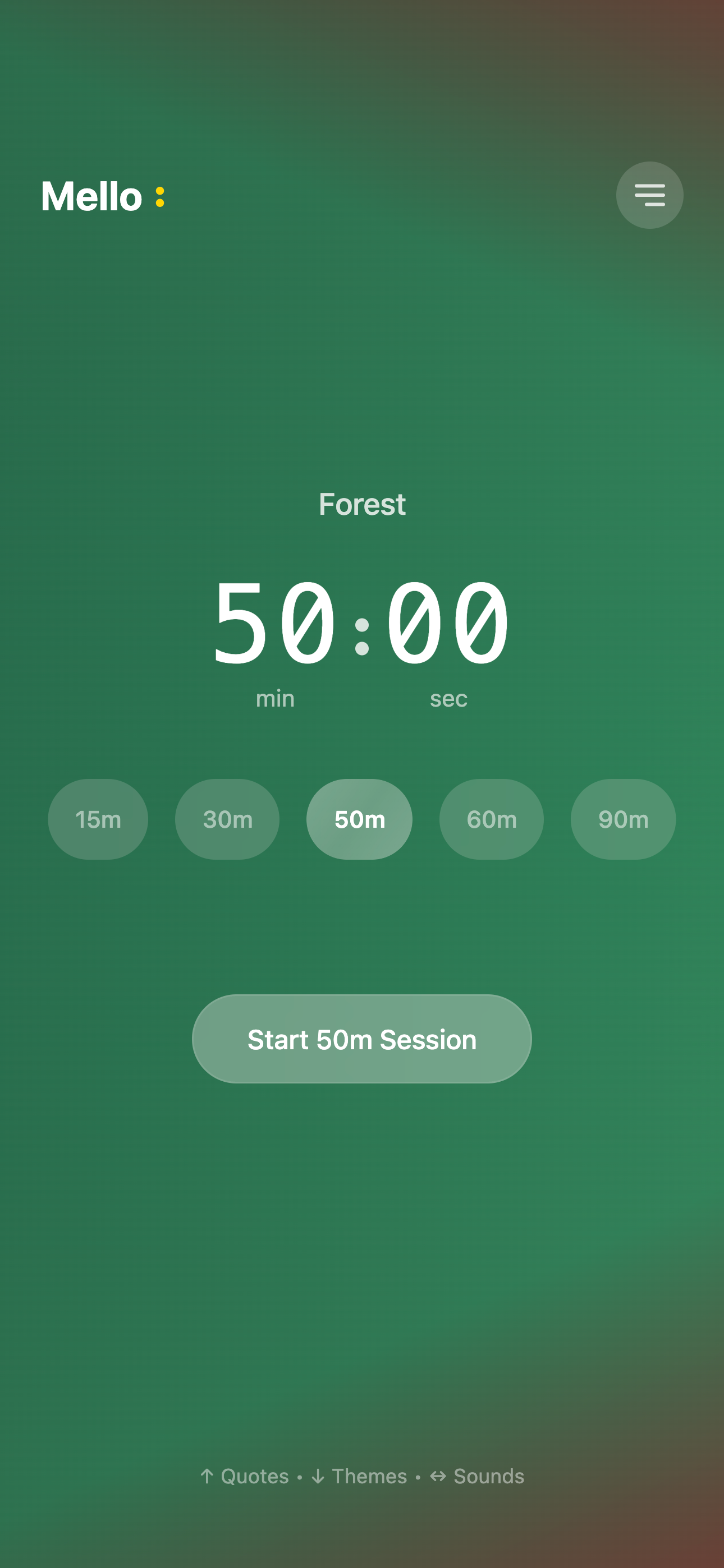 “I’ve tried a dozen focus apps, but Mello is the only one that actually helps me stay present. The soundscapes feel handcrafted, the visuals are calming, and the whole experience is just…quietly powerful. I use it every day.”